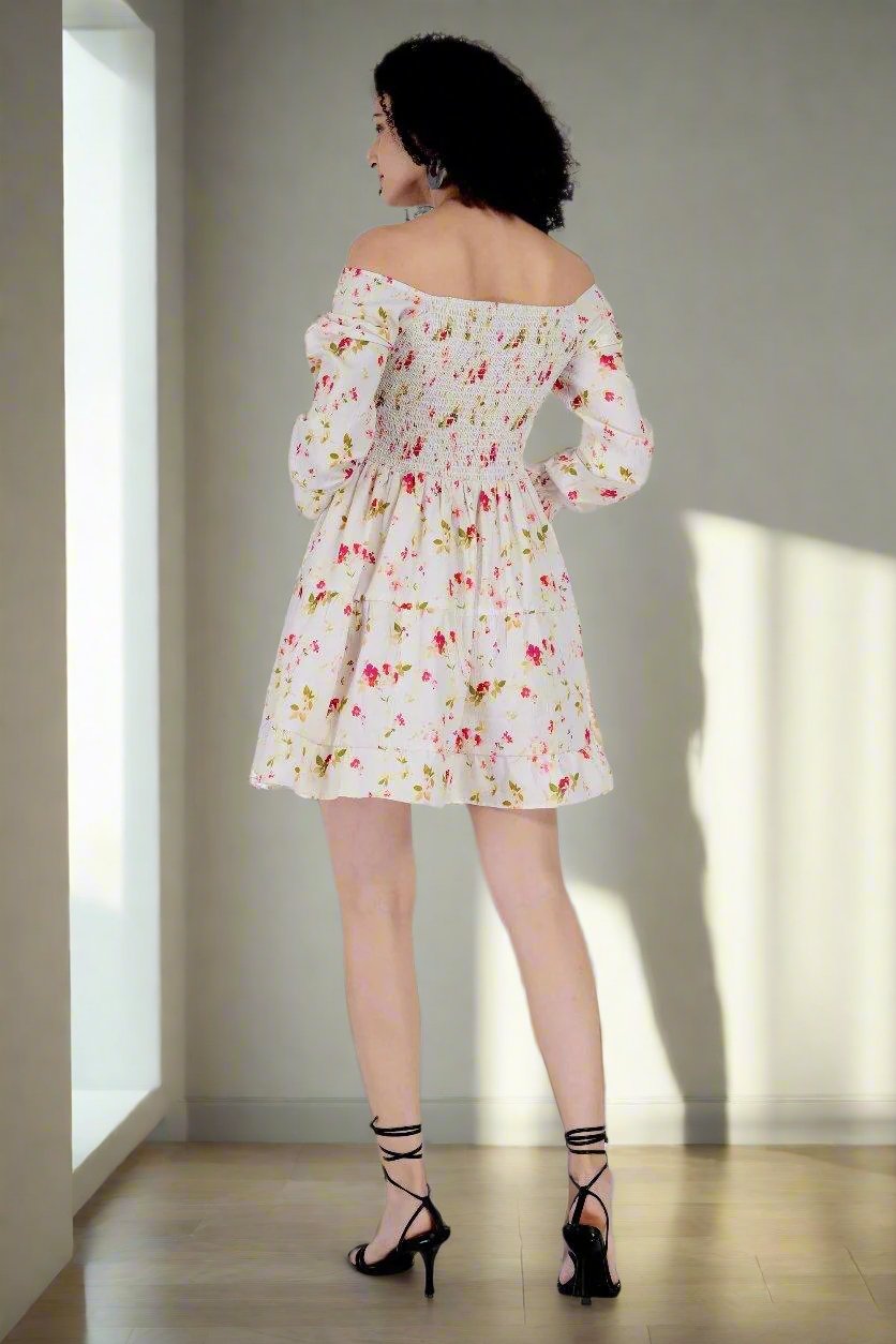Stand out in this playful and flirty off-white dress adorned with vibrant hibiscus flower prints. Made of quality polyester, this dress boasts full sleeves, an off shoulder neckline, and a fun digital print. Measuring 34 inches in length, it’s perfect for any occasion.